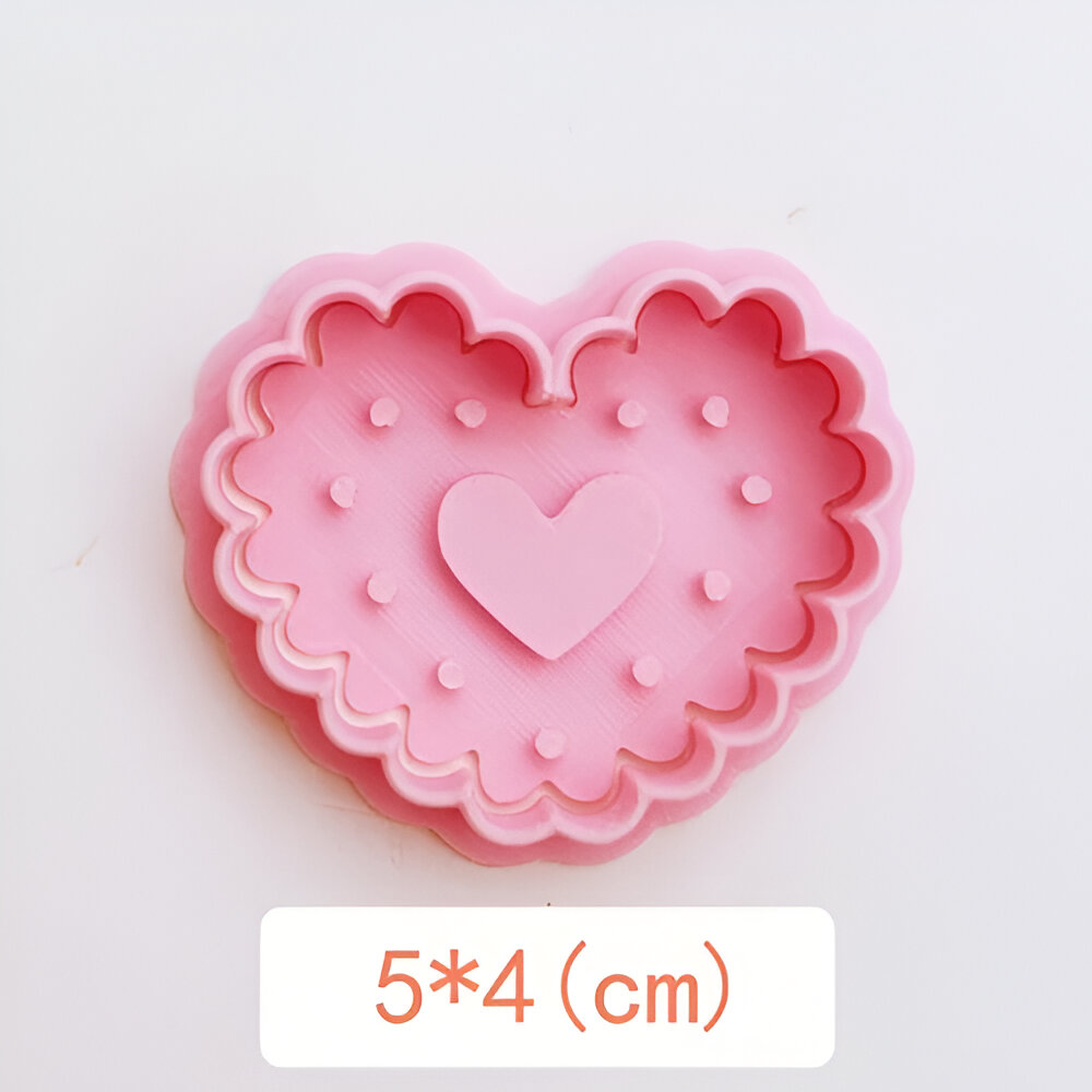 Retro Heart & Flower Pattern Cookie Cutter and Embosser Stamp Baking Tools