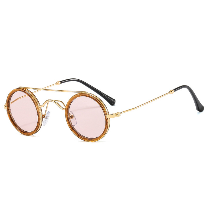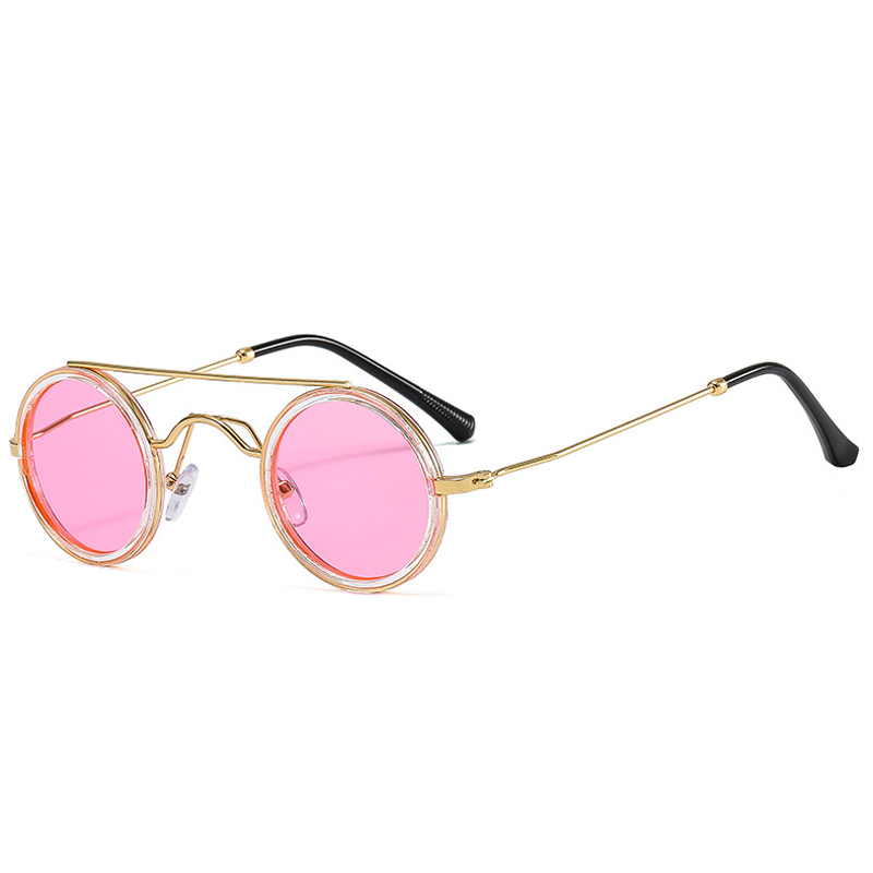 Retro Round Metal Sunglasses with Double Bridges – UV400 Protection, Candy Colors
