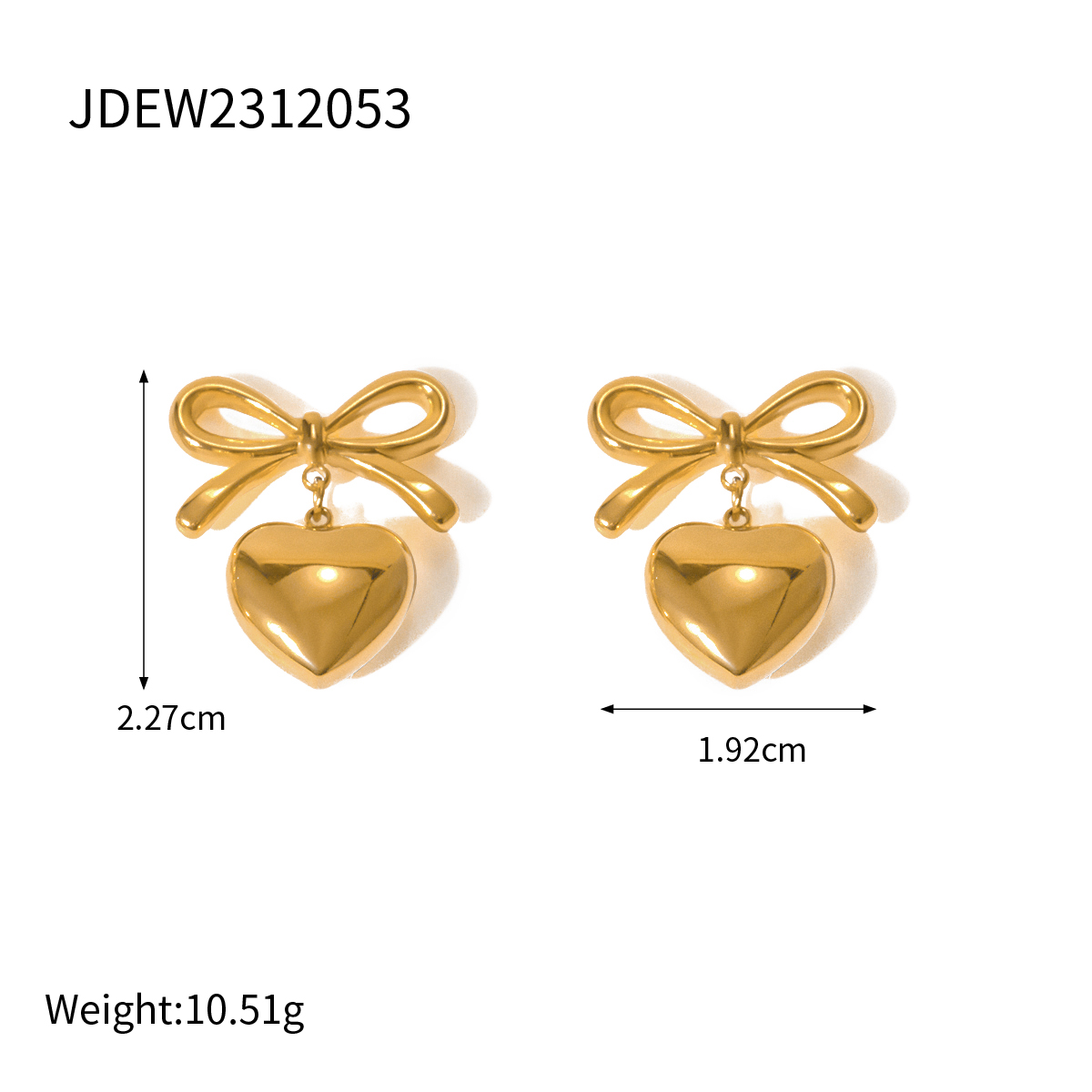 Smooth 18K Gold PVD Plated Bow Shaped Heart Pendant Earrings