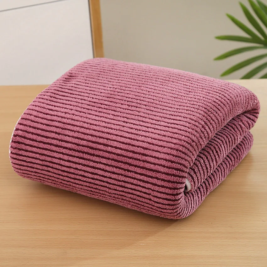 What sets this towel apart is its high-quality coral fleece material, which is not only soft to the touch but also highly absorbent, making drying off a breeze. The deep stripe design adds a modern touch to any bathroom, elevating both style and functionality. It’s perfect for use in every season, and because it’s machine washable, upkeep is effortless. This towel is designed to withstand frequent use while maintaining its plush softness.