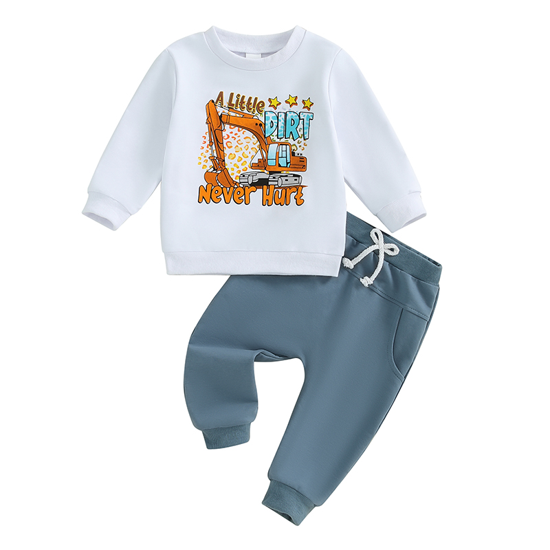 Toddler Boy Autumn Outfit Set: Long Sleeve Excavator Top & Elastic Pants