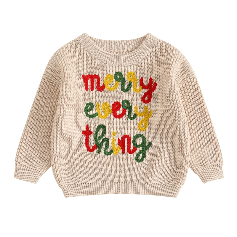 • Festive Letter Embroidery: The embroidered letters give this sweater a cheerful, holiday-ready vibe, making it the perfect outfit for Christmas celebrations and family photos.