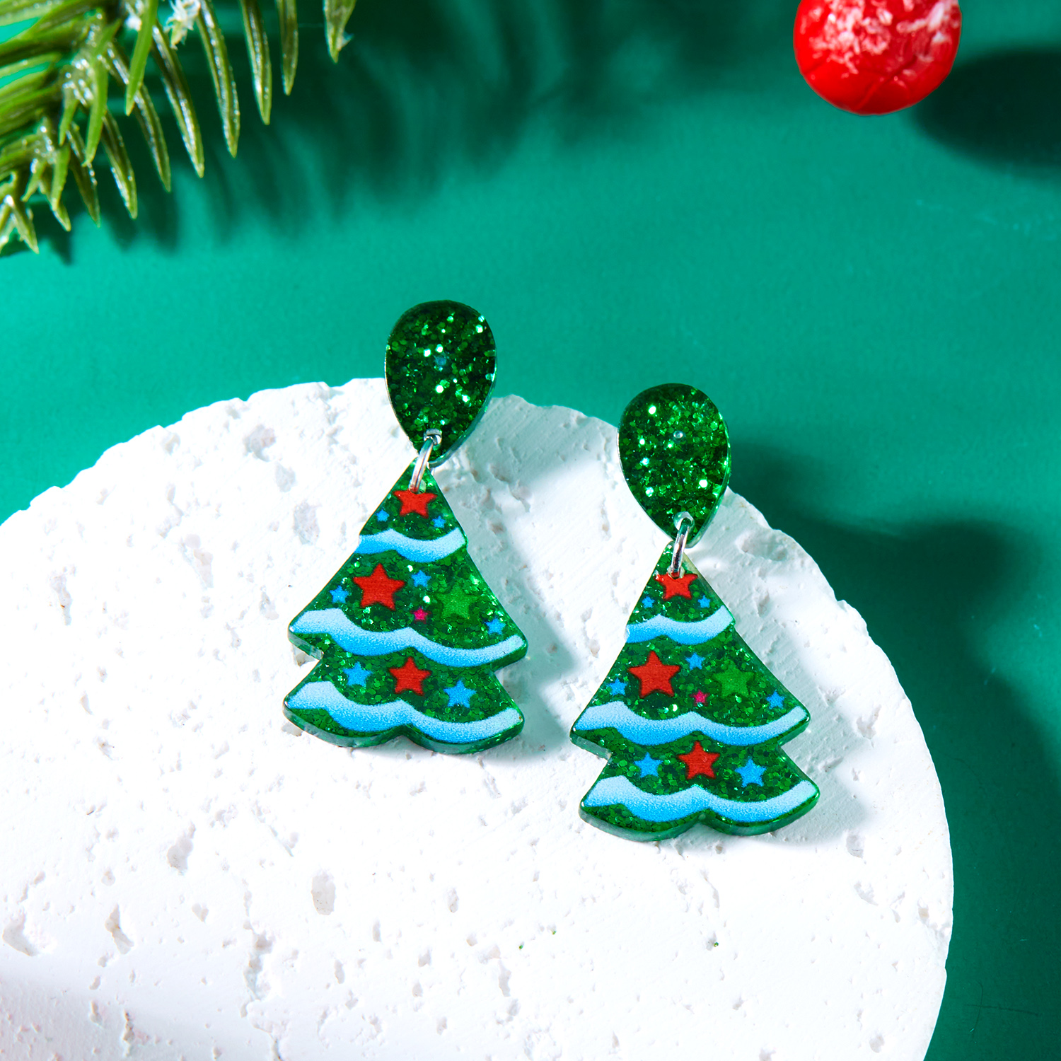 Trendy Blue Christmas Tree Stud Earrings with Acrylic Sequins for Women