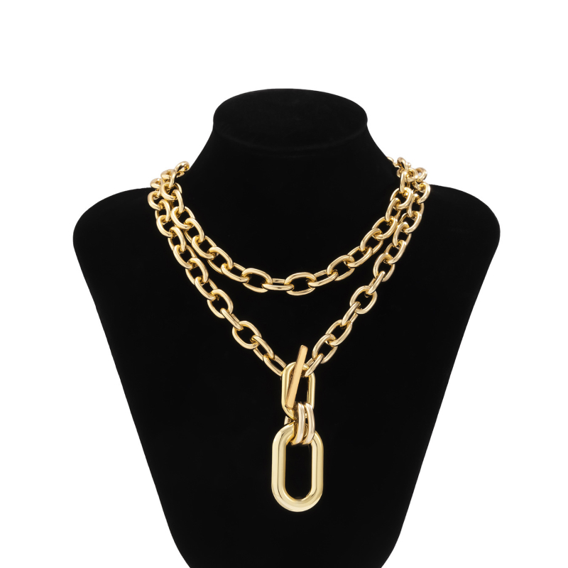 Trendy Metal Thick Chain Necklace with Big Elliptical Pendant