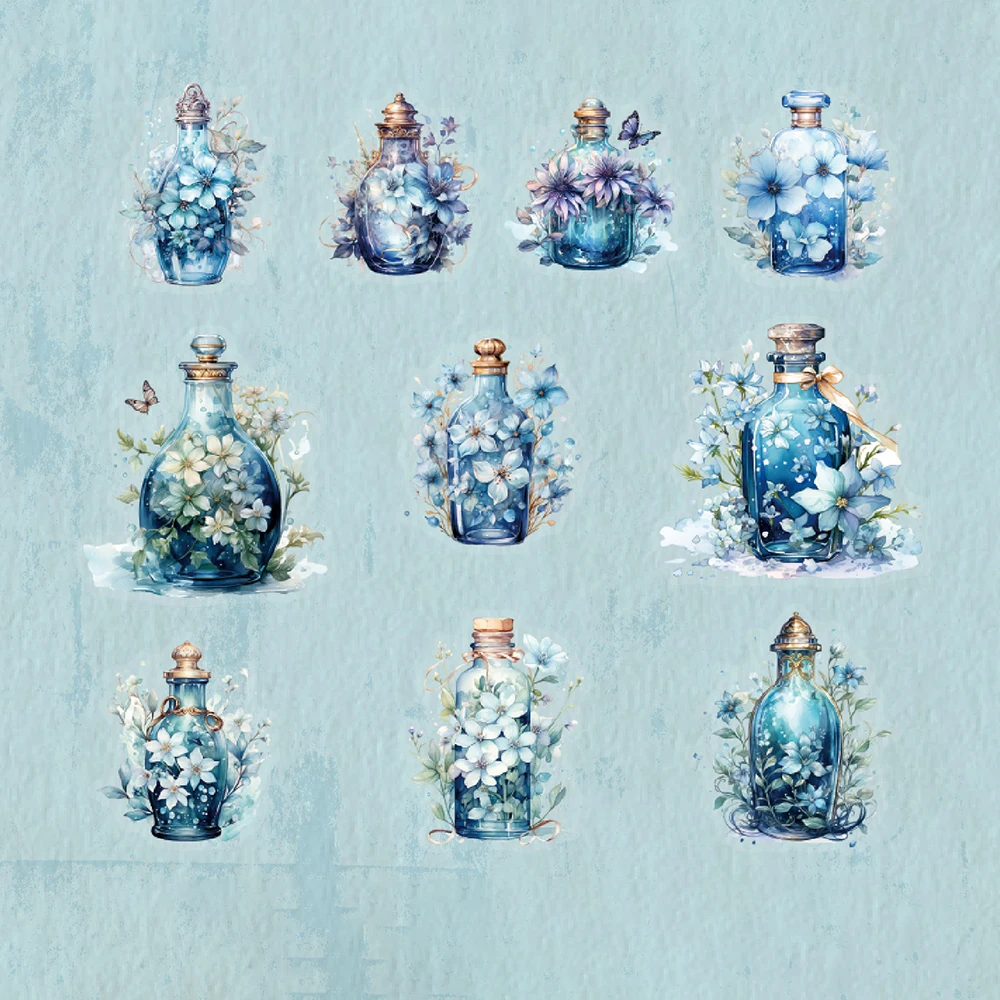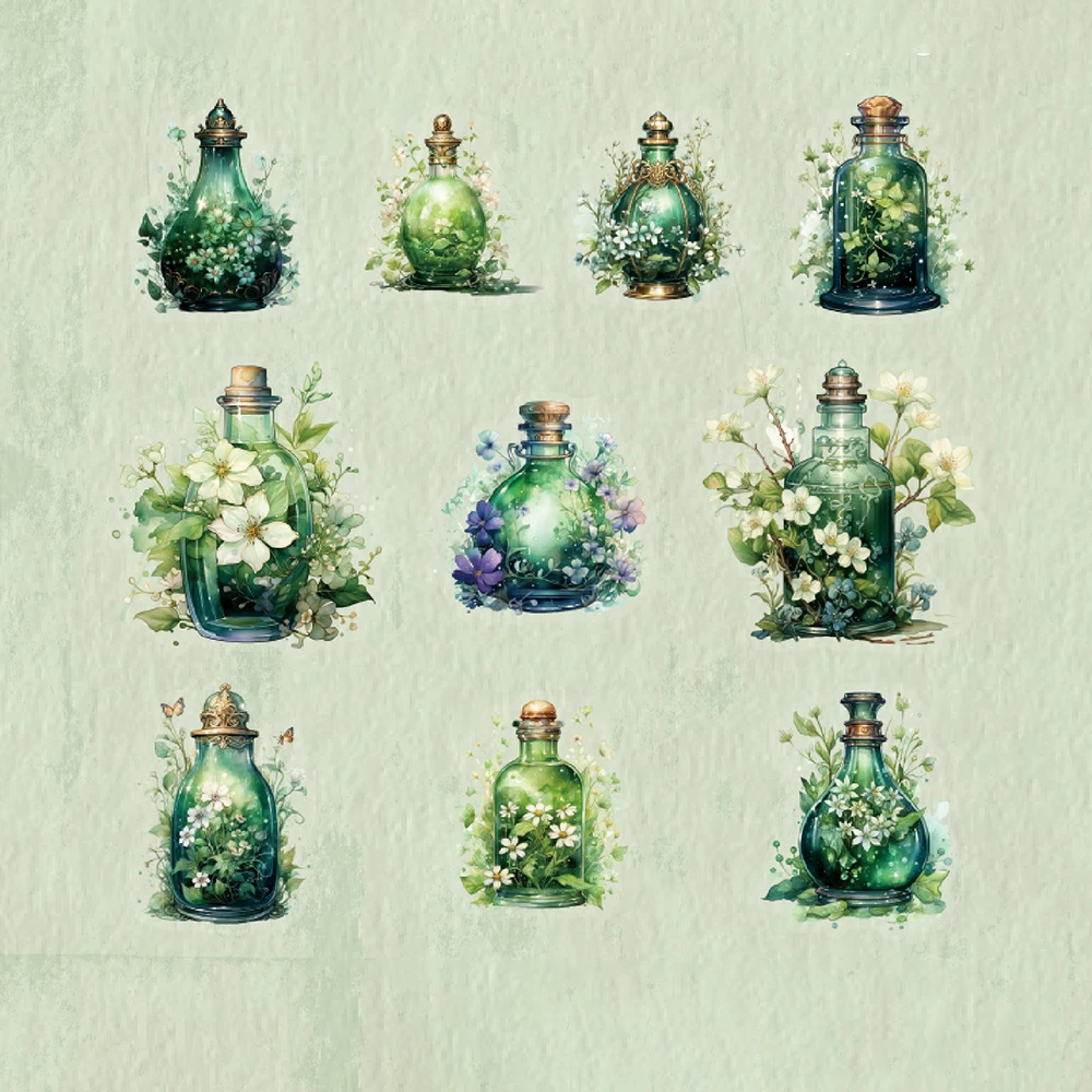 The magic of these stickers lies in their attention to detail and timeless design. Each style brings a different story to your projects, with bottle-themed designs that feel both nostalgic and trendy. They are crafted from PET, a durable yet lightweight material that offers a smooth and semi-transparent finish, allowing them to layer beautifully over colored or patterned backgrounds. These stickers not only stick well but are also easy to reposition, giving you flexibility during your creative process.