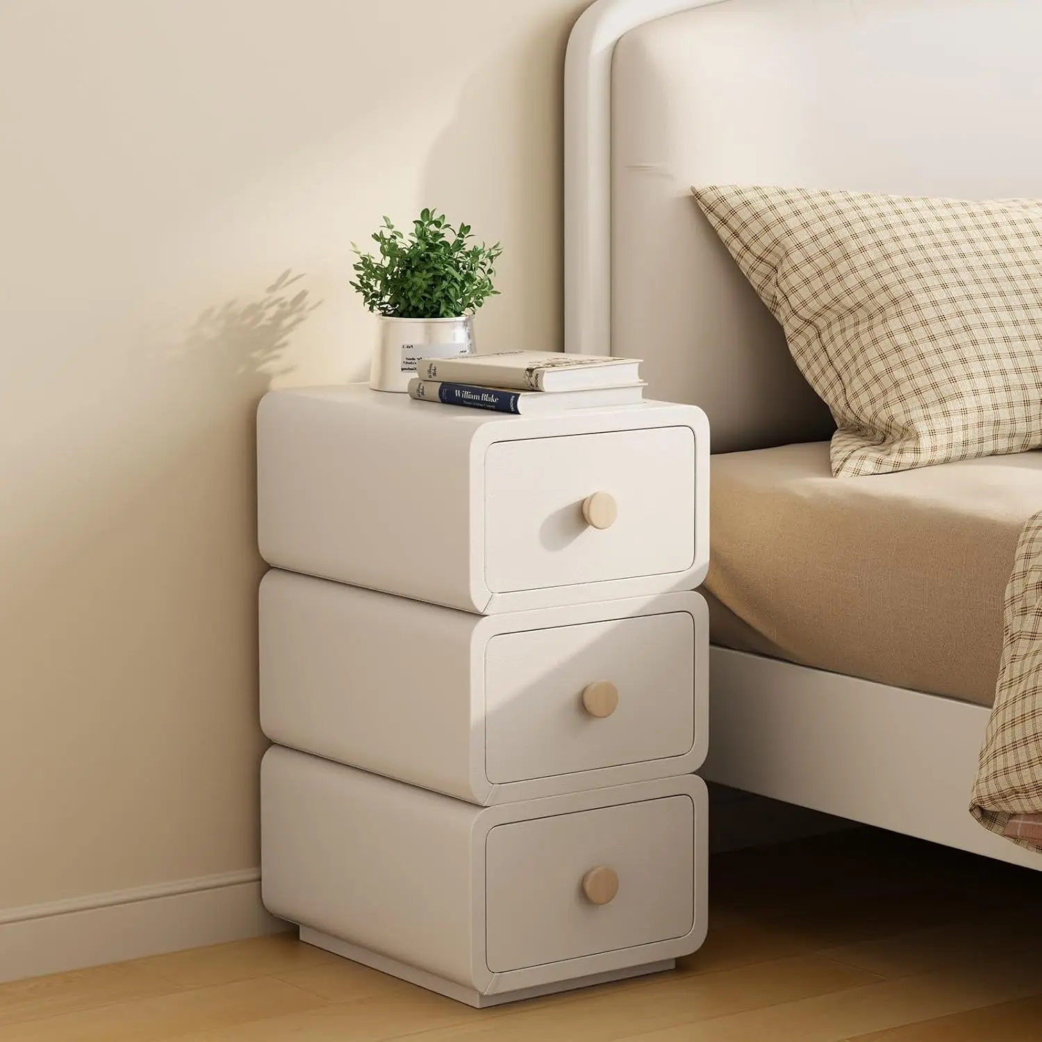 Featuring a smooth white leather surface paired with a sturdy solid wood interior, this nightstand is as striking as it is practical. The attention to detail, including silent and robust metal drawer slides, ensures smooth operation and long-lasting reliability. The compact dimensions of 15.7″ W x 15.6″ D x 22.6″ H make it an ideal fit for any room, whether it’s your bedroom, living room, dorm, or hallway.