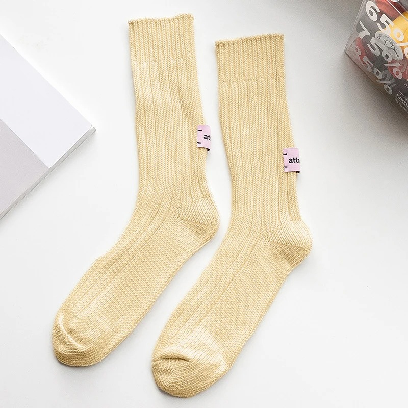 Crafted from soft, durable polyester, these socks provide both warmth and comfort, making them the ideal choice for cooler days. The mid-calf length offers just the right amount of coverage, ensuring that your feet stay warm while still allowing for breathable comfort. The simple yet stylish solid colors add a modern touch, while the cute pink label stacked detail gives them a trendy flair. These socks are perfect for anyone looking to add a little personality to their winter wardrobe.