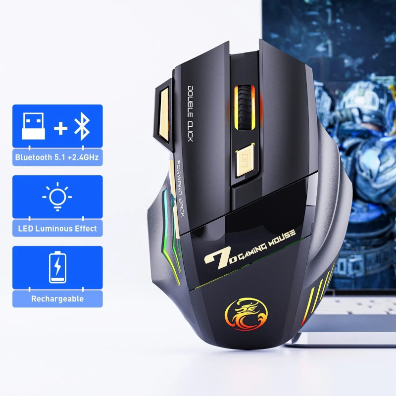 Don’t settle for a basic mouse—level up your gaming or productivity setup with this feature-packed wireless mouse. With dual-mode functionality, adjustable DPI, silent operation, and customizable LED lighting, it provides everything you need to enhance your performance and style. Whether you’re a gamer, a professional, or a creative, this mouse will give you the precision, comfort, and flexibility you need. Ready to transform your workspace? Get your Wireless Gaming Mouse today and start experiencing the difference!