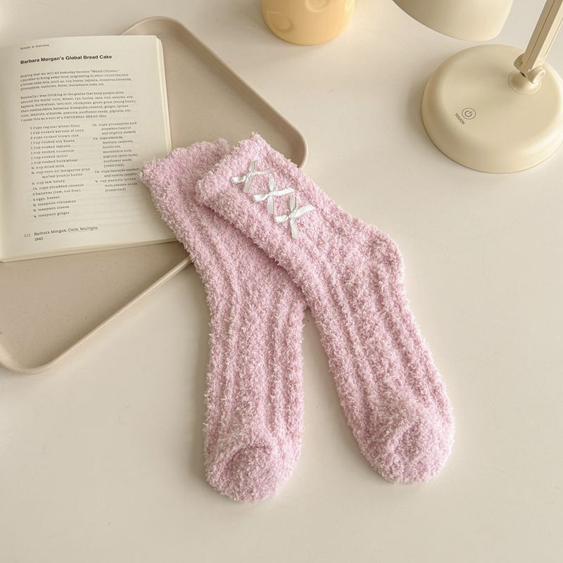 Features of the Coral Fleece Bowknot Socks
