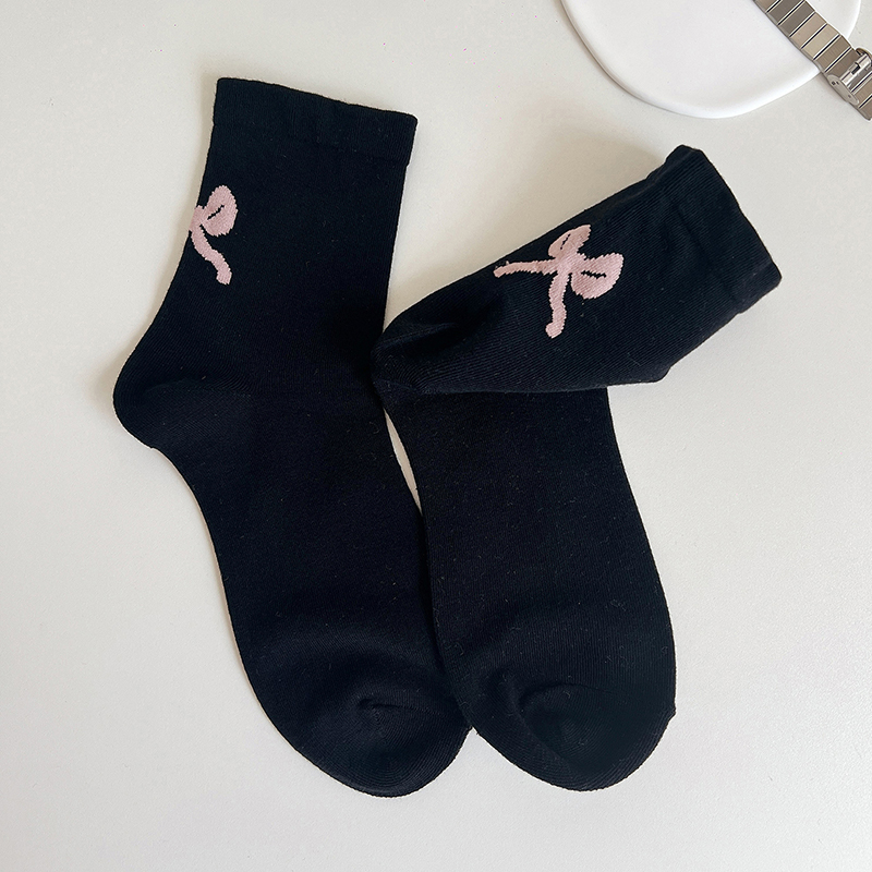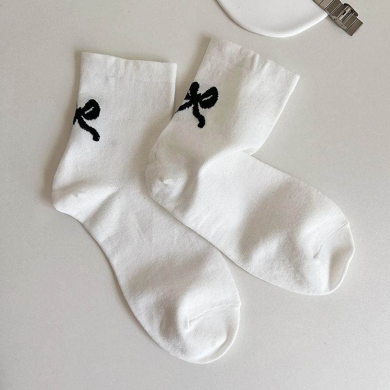 Women’s Summer Thin Cotton Mid-Tube Socks with Bow – Casual Streetwear