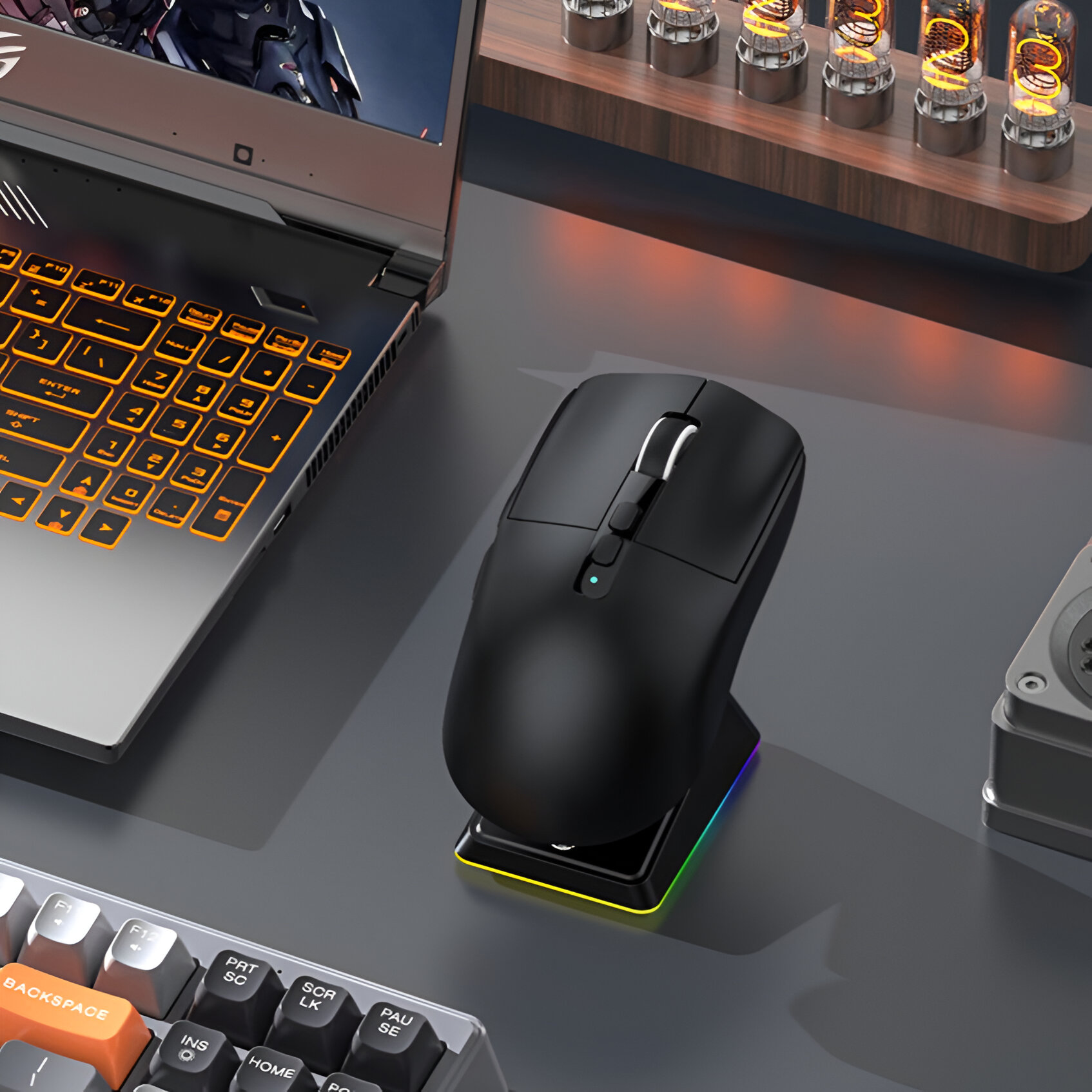 • Rechargeable with Charging Base – Conveniently recharge with a dedicated charging base, keeping your setup neat and your mouse always ready.